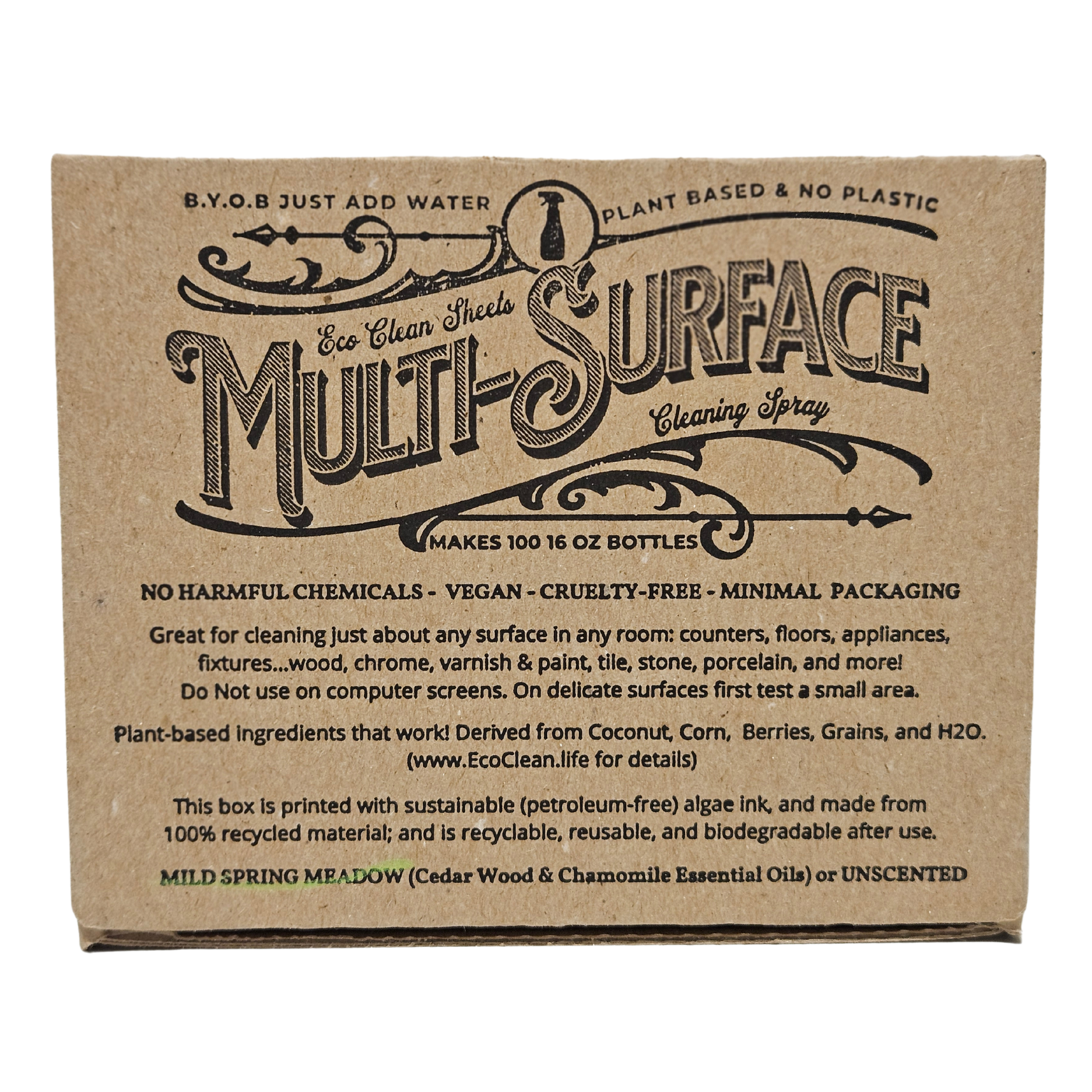 Eco Clean Sheets presents Concentrated Multi-Surface Cleaning Spray Sheets.